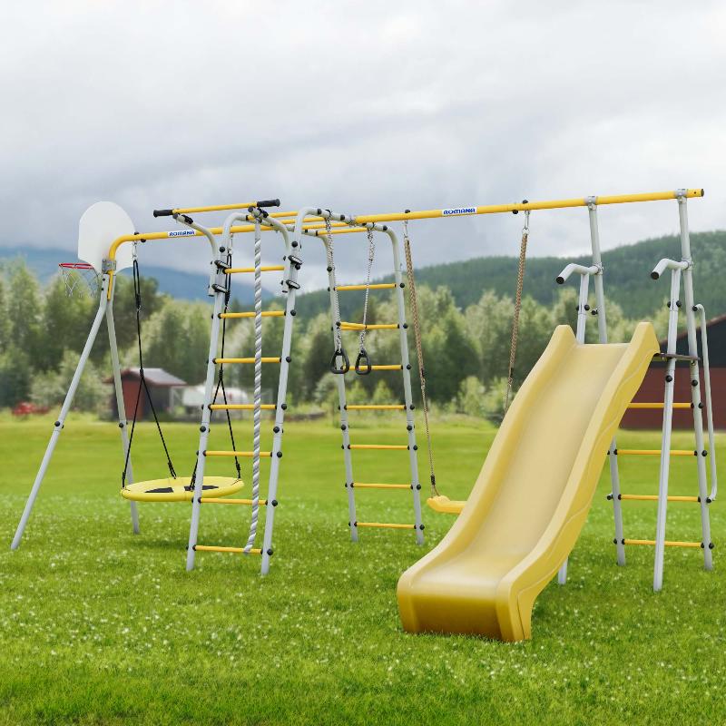 Детский спортивный комплекс для дачи ROMANA Веселая лужайка - 2 (Цвет  серый/желтый | Без качелей)