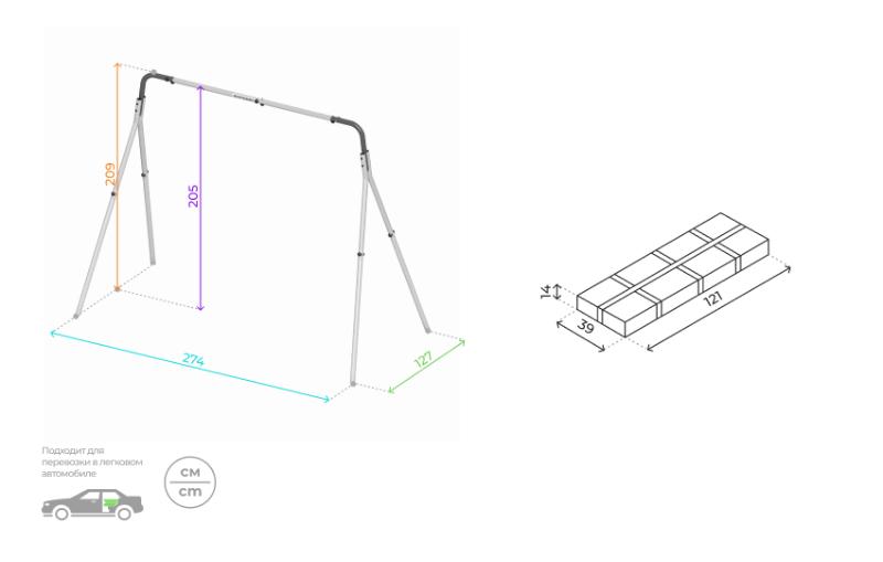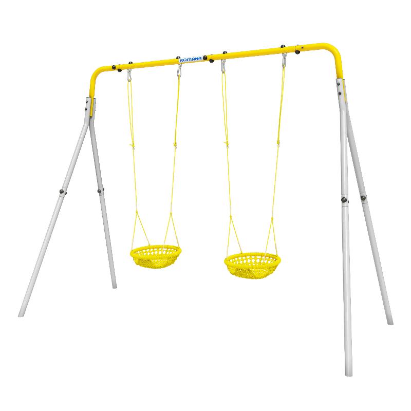 Каркас для качелей ROMANA - это крепкая и надежная металлическая конструкция без навесных элементов и качелей. Это оборудование может использоваться как турник, а также подходит для установки качелей. Каркас удобно использовать для семей с двумя детьми.