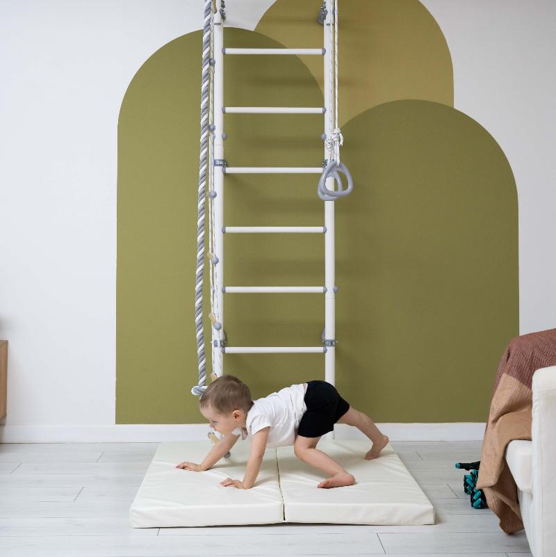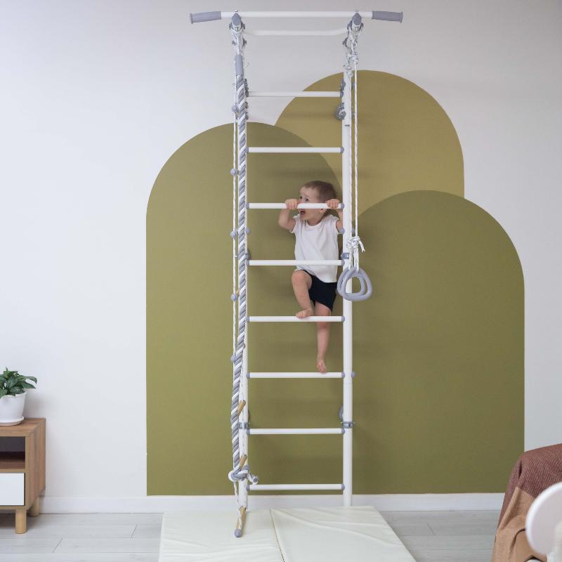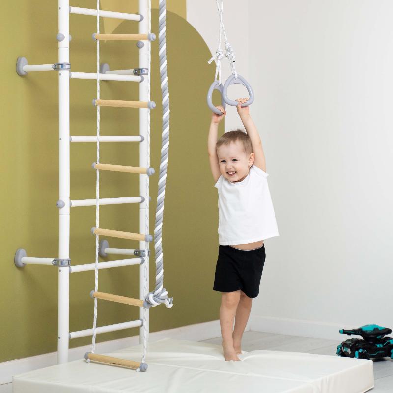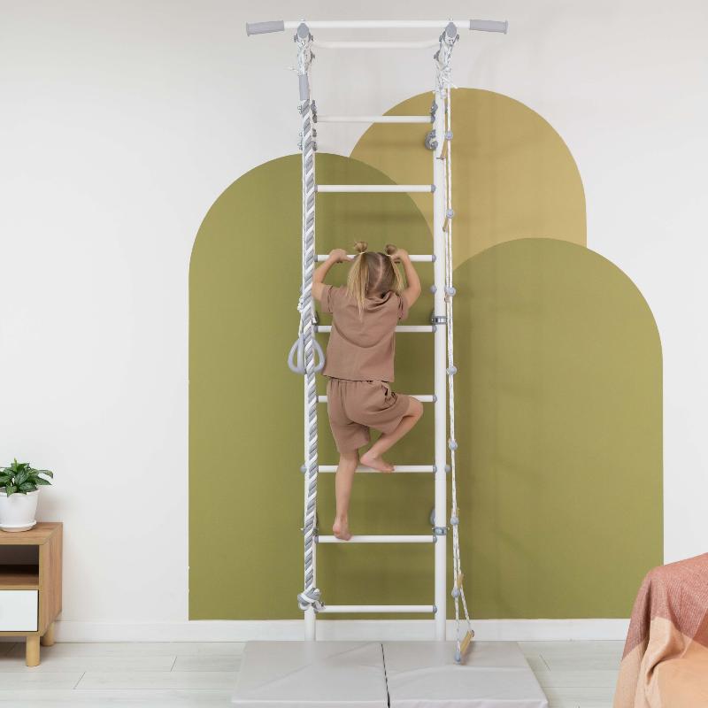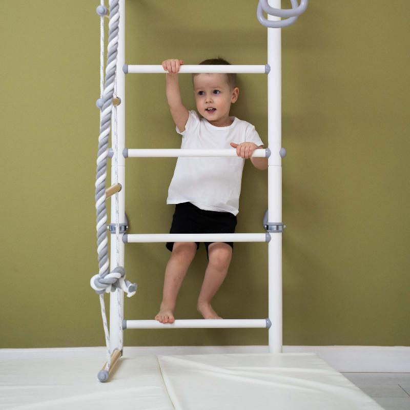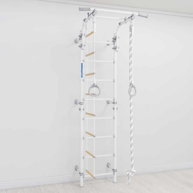Шведская стенка ROMANA Next Muar+ – этот детский комплекс для спорта и игры представлен сборно-разборной конструкцией, с габаритами 860х850 мм. Общий вес – 24.9 кг. Комплекс крепится к стенке с использованием специальных кронштейнов. Допустимая нагрузка на несущую конструкцию составляет 100 кг, при этом на один подвесной элемент – 50 кг. Это идеальный вариант для развития детей любого возраста в домашних условиях.