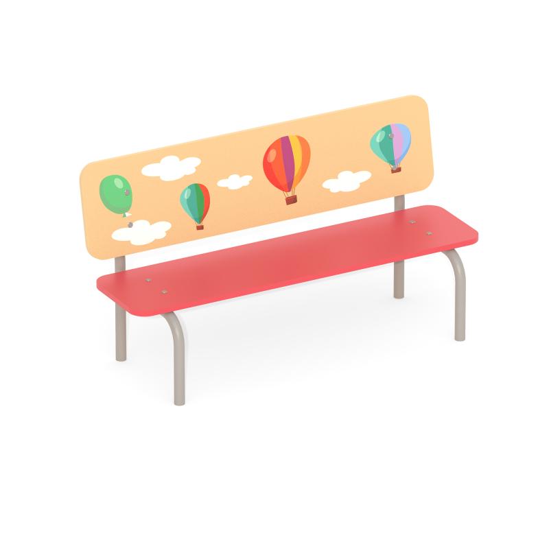 Скамья детская «Romana 302.09.00» двухцветная детская скамейка со спинкой для детских площадок, спортивных городков, детских садов. Спинка изделия декорирована рисунком «Шары», выполненным «УФ»-печатью.