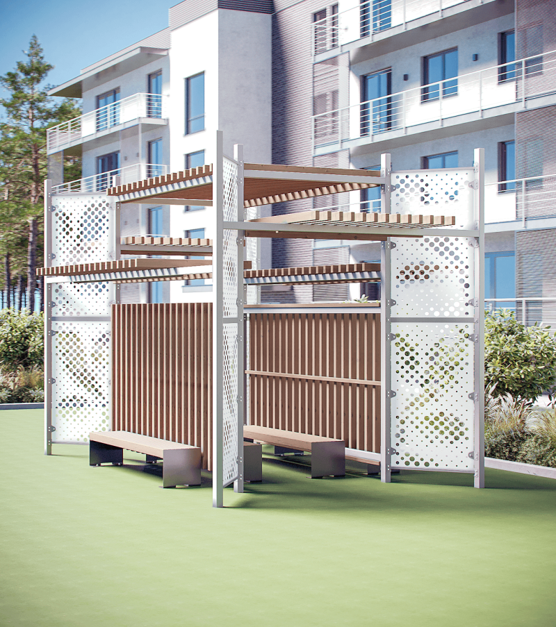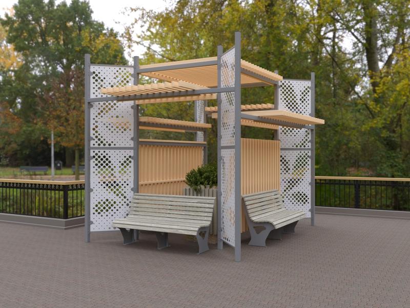 Простой и элегантный дизайн перголы в современном стиле позволяет устанавливать красивую конструкцию в парках, скверах, на набережных, во дворах жилых домов и на детских площадках.