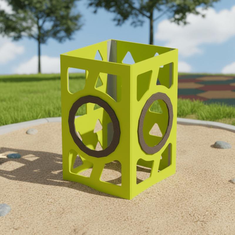 В сборе представляет собой конструкцию в виде прямоугольного вертикального изделия, собранного со стенками с помощью уголков, установлена на грунтозацепы.Изделие устанавливается на открытых уличных участках, находящихся под контролем ответственного лица – эксплуатанта. Установка Изделия должна проводится на ровной площадке, свободной от насаждений. В зоне приземления должно быть ударопоглощающее покрытие (песок, древесные опилки) минимальной толщиной 300 мм.