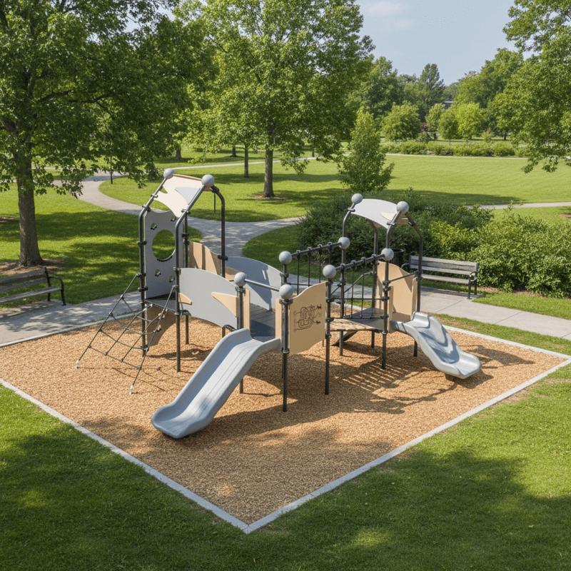 Две башни с крышами и панелями для развивающих игр.