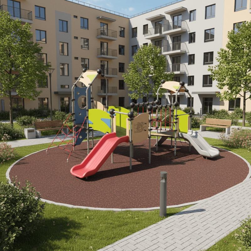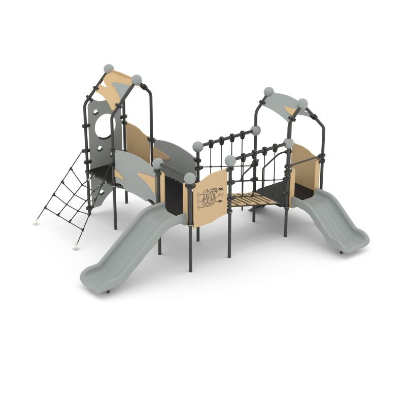 Комплекс выполнен в яркой цветовой гамме. Округлые формы и безопасные материалы обеспечивают комфортную игру. Разнообразие элементов способствует физическому развитию, координации и социализации детей. Комплекс подходит для размещения на небольших площадках во дворах, парках или территориях детских учреждений.