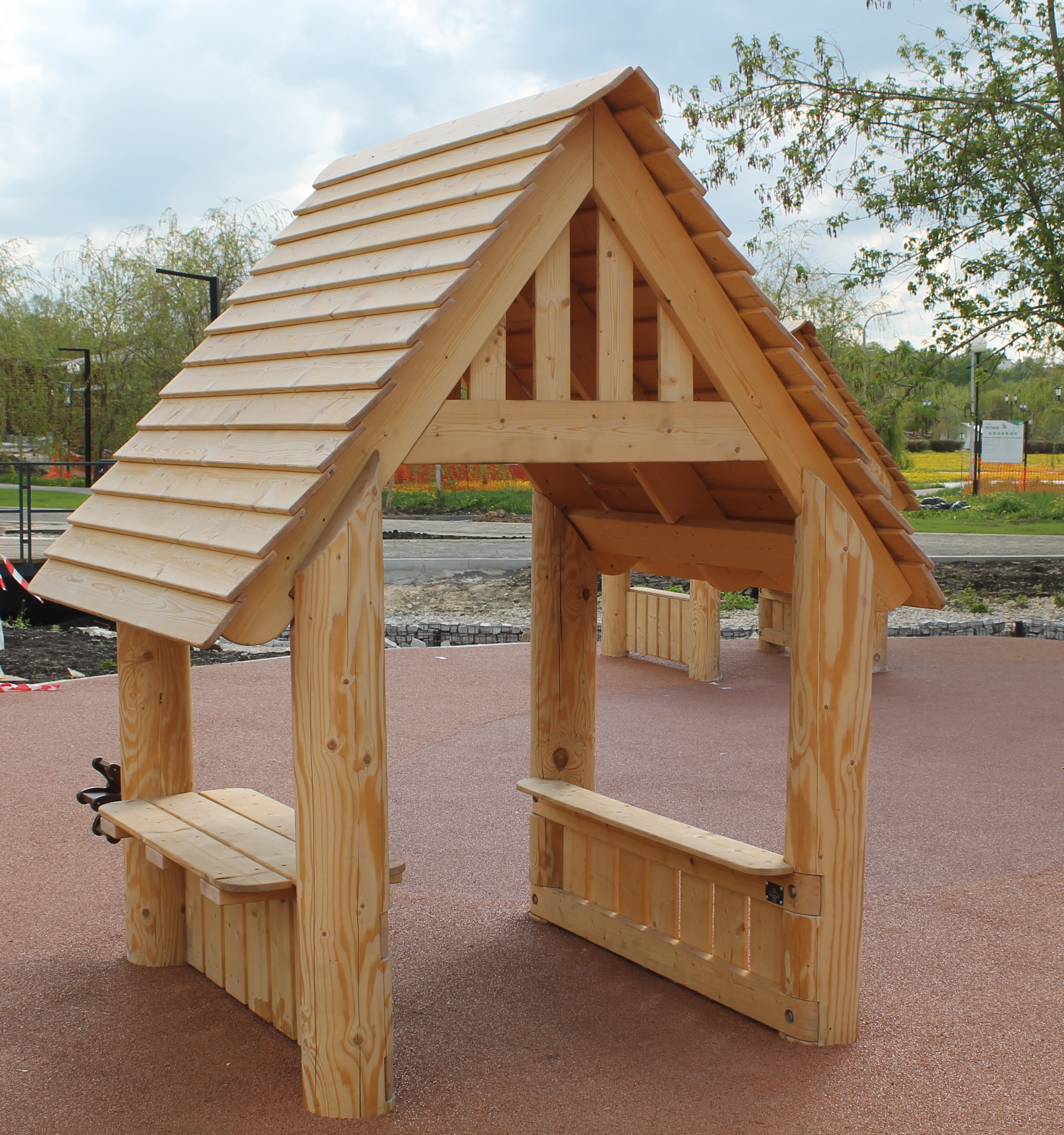 Каркас, обшивка – дерево, обработанное антисептиком и маслом террасным атмосферостойким для древесины.