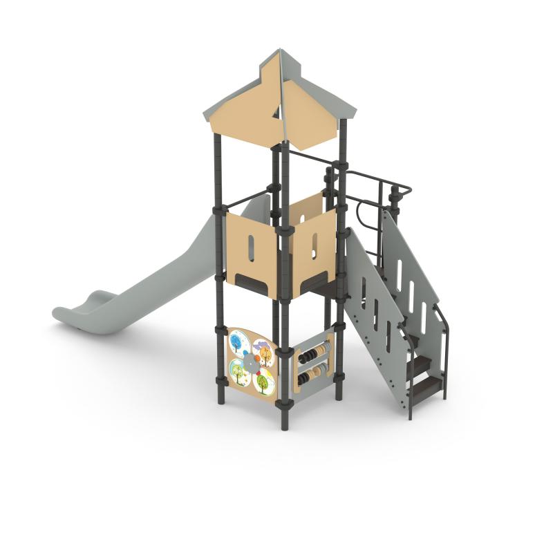 Игровой комплекс для тематических игр и физического развития предназначен для детей в возрасте от 4 лет. Изделие представляет собой сборно-разборную каркасную конструкцию из металлических труб, установленную на забетонированные стойки.Изделие устанавливается на открытых уличных участках, находящихся под контролем ответственного лица – эксплуатанта. Установка Изделия должна проводится на ровной площадке, свободной от насаждений. В зоне приземления должно быть ударопоглощающее покрытие (песок, древесные опилки) минимальной толщиной 300 мм.