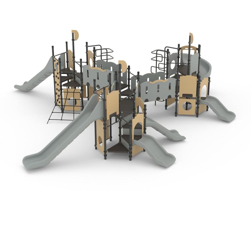 Игровой комплекс для тематических игр и физического развития предназначен для детей в возрасте от 8 лет. Изделие представляет собой сборно-разборную каркасную конструкцию из металлических труб, установленную на забетонированные стойки.Изделие устанавливается на открытых уличных участках, находящихся под контролем ответственного лица – эксплуатанта. Установка Изделия должна проводится на ровной площадке, свободной от насаждений. В зоне приземления должно быть ударопоглощающее покрытие (песок, древесные опилки) минимальной толщиной 300 мм