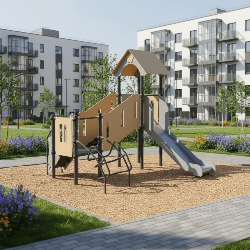 Детская площадка «Romana 104.18.00» с домиком-горкой, горкой и переходом, подходит для небольших площадок на территории детских садов и дворовых площадок, на дачном участке. Позволяет детям развивать координацию и ловкость.