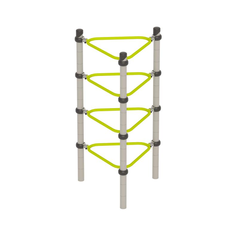 Спортивно - игровой комплекс для тематических игр и физического развития предназначен для детей в возрасте от 8 до 12 лет. Изделие представляет собой устойчивую конструкцию, обеспечивающую безопасные условия для занятий на открытом воздухе. Конструкция обладает высокой ударопрочностью и виброустойчивостью.Выполнен в виде металлических стоек, образующих треугольник.