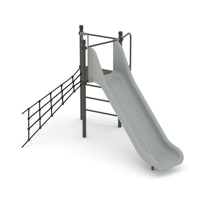 Спортивно - игровой комплекс для тематических игр и физического развития предназначен для детей в возрасте от 8 до 12 лет. Изделие представляет собой устойчивую конструкцию, обеспечивающую безопасные условия для занятий на открытом воздухе. Конструкция обладает высокой ударопрочностью и виброустойчивостью.Выполнен в виде металлических стоек, образующих треугольник, к стойкам прикреплены канатный лаз, горка.